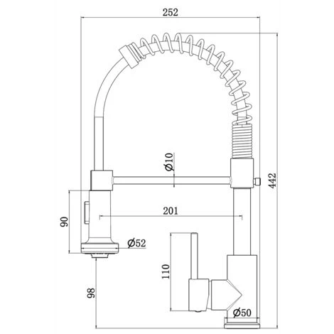 – Molla in metallo con tubo flessibile intrecciato nero.