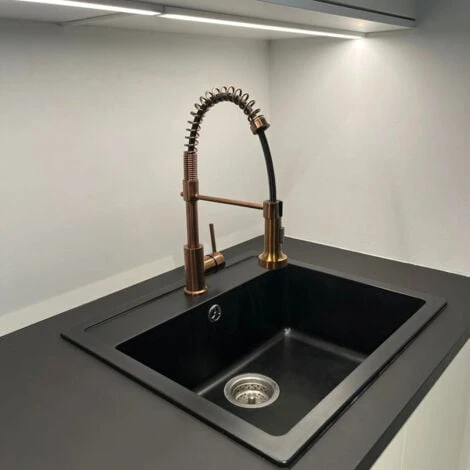 – Molla in metallo con tubo flessibile intrecciato nero.