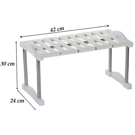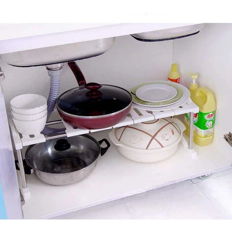 Lo scaffale salvaspazio aiuterà ad organizzare tutto lo spazio a disposizione sotto il lavello della cucina o in qualsiasi posto della casa. Il ripiano è modulare e si può modificare a piacimento per permettere un corretto inserimento tra le tubature, il sifone, tubi di scarico esistenti. Oltre che come sotto lavello si può utilizzare all’interno di mobili e armadi per sfruttare al meglio non solo la larghezza degli stessi, ma anche l’altezza.