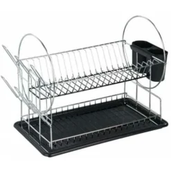 Il pregiato scolapiatti Premium Duo con vassoio raccogligocce estraibile evita l’accumulo di acqua stagnante prevenendo la formazione di macchie di calcare sul piano del lavello. Visto che anche nell’era della lavastoviglie esistono ancora stoviglie e posate che è meglio lavare a mano, lo scolapiatti rappresenta un accessorio funzionale per il lavello in cucina, nel capanno in giardino o sul camper. Lo scolapiatti, con esclusivo rivestimento in plastica ad effetto antisdrucciolo, offre ampio spazio per piatti, tazze o bicchieri su due piani. Il cestello separato per le posate viene fissato ai lati del ripiano. Dall’altro lato lo scolapiatti Premium possiede un ulteriore supporto porta tazze. Sul ripiano inferiore trovano altro spazio tazze e bicchieri. In questa maniera il piano di lavoro resta sempre asciutto.L: 50 cm x A: 36 cm x P: 24 cm