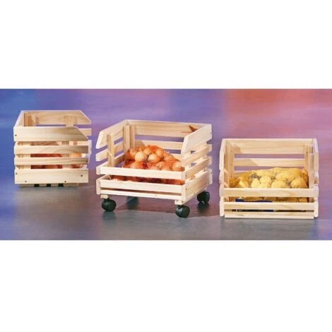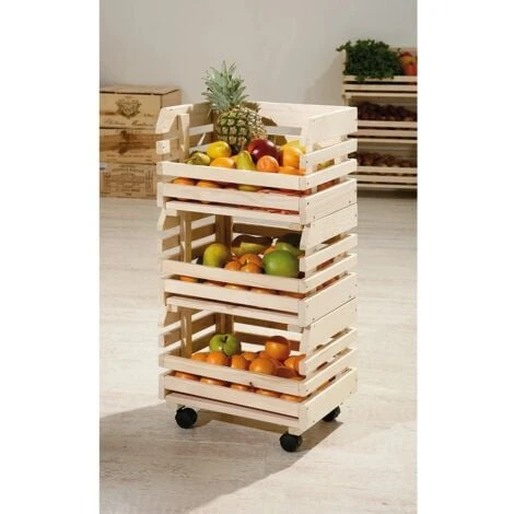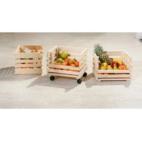Ecco un set di 3 ceste in legno sovrapponibili, con ruote alla base in modo da poterlo spostare agevolmente ovunque vuoi.