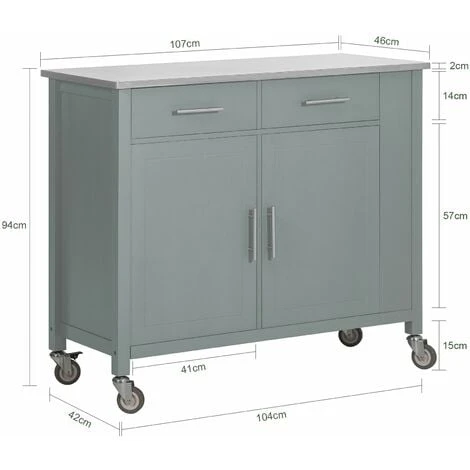 Questo carrello da cucina ha due cassetti e due ante, dove puoi riporre molti utensili.