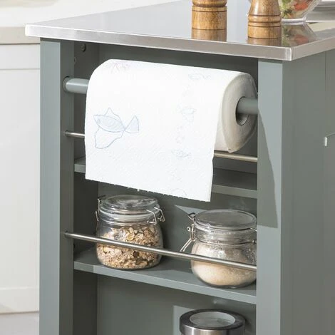 Il carrello ha 3 vani portaoggetti aperti e un portarotolo da cucina su cui puoi riporre molti utensili. Le traverse impediscono agli oggetti di cadere a terra. La vetreria può anche essere posizionata tranquillamente qui.