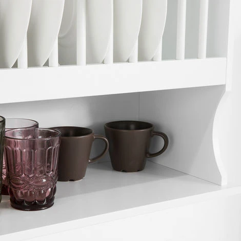 - Sotto il supporto per piatti c’è un ripiano che ti dà ulteriori posti per mettere tazze e altri accessori