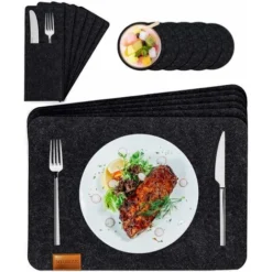 - 【Accessori completi per tovagliette in feltro: le tovagliette sono in feltro, 6 sottobicchieri (44x 32 cm) + 6 sottobicchieri (10 x 10 cm) + 6 tasche per posate (25 x 9 cm). Feltro trattato di alta qualità con 44×32 cm