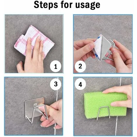 - Ampiamente usato: adatto per spugna, canovaccio, badeball, palla d’acciaio o asciugamano appeso, spatola, tagliere, cappelli, vestiti, ecc. In cucina o in bagno, possono essere incollati su un’ampia varietà di superfici lisce, come legno, vetro, marmo, piastrelle di ceramica, ecc.