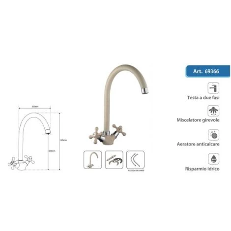 Trade Shop – Rubinetto Per Lavello Cucina A Canna Alta Croce Bicomando A Vite Colore Avena