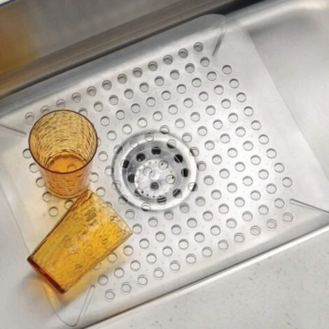 Trade Shop – Set 2pz Tappeto Tappetino Lavello Scolapiatti Trasparente 32x32x1cm Silicone Cucina