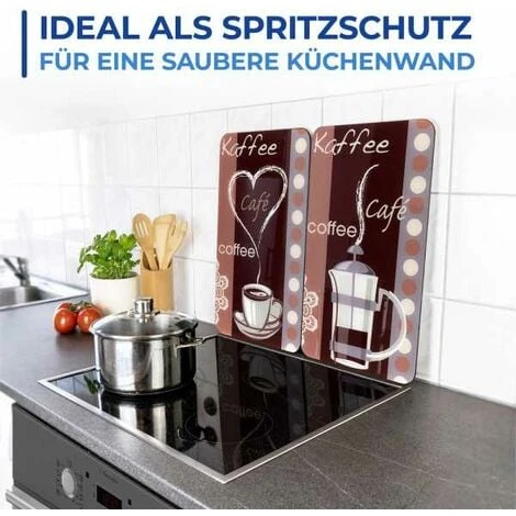 Dieses zweier Glas-Abdeckplatten-Set bringt Kaffeehaus-Atmosphäre in die Küche und sorgt für zusätzliche Funktionalität des Herdes. Die Abdeckplatten schützen den Herd zuverlässig. Ob Glaskeramik-, Elektro- oder Gasherd die acht rutschfesten Spezialfüße gewährleisten stets den nötigen Abstand. Die Herdabdeckplatten eignen sich zum Abstellen von warmen Töpfen und Pfannen. Ebenso können sie als zusätzliche Erweiterung der Arbeitsfläche zur Vorbereitung von Speisen dienen. Ihre kratzfeste, porenfreie Oberfläche wird höchsten hygienischen Ansprüchen gerecht, da sie das Einnisten von Bakterien und Gerüchen verhindert. Die extrem robusten und nahezu unzerbrechlichen (schlagfesten) Platten verfügen über einen Europäischen Patentschutz.