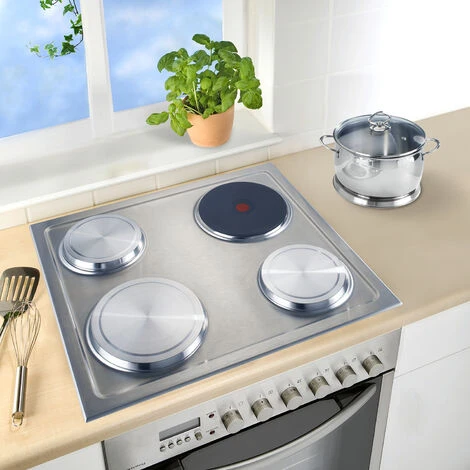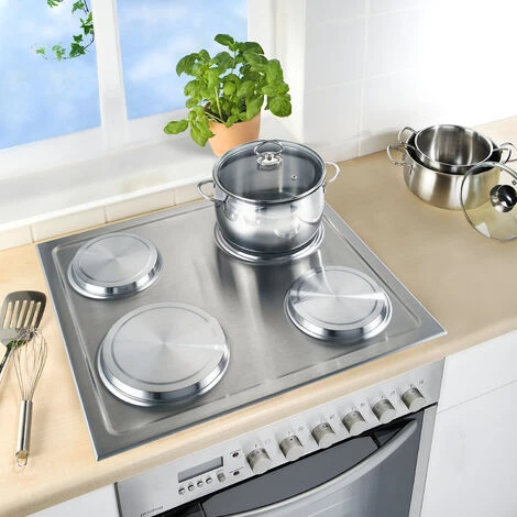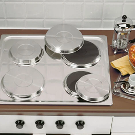 Set 4 Coprifornelli per piani di cottura elettrici realizzati in acciaio inossidabile.